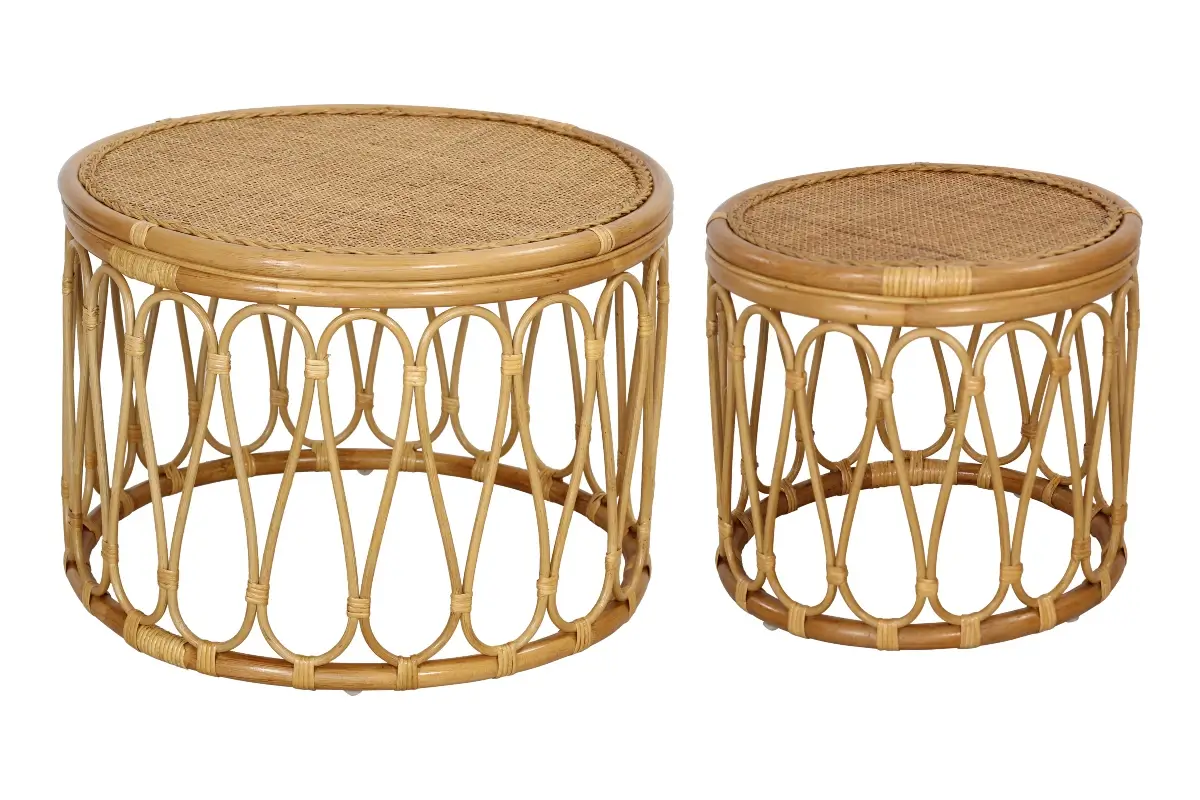 Rattan side table and Coffee table in Beige color.